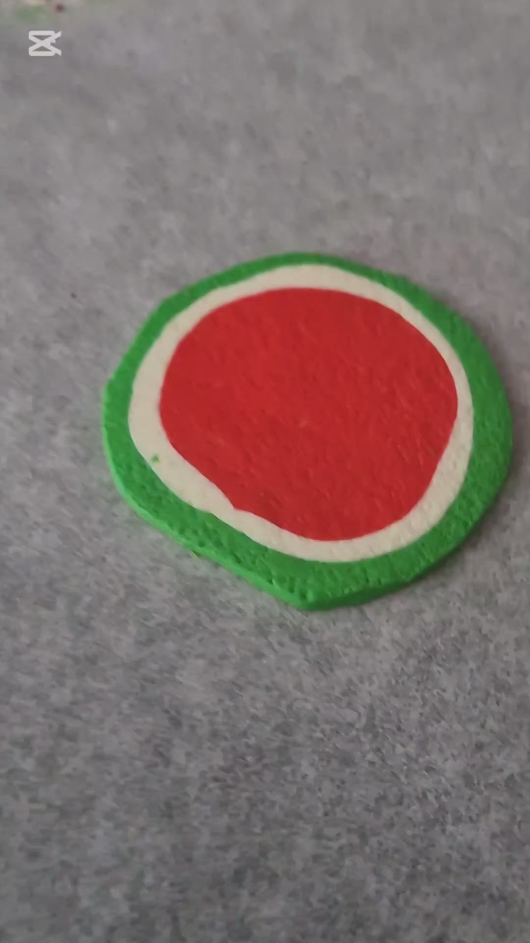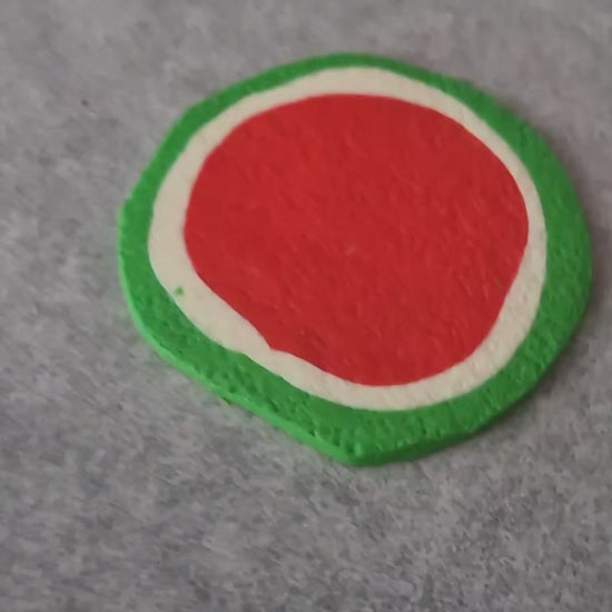 Hand-sculpted Watermelon Charm – made from vibrant polymer clay in the red, off-white, and green hues of the Palestinian flag. Since the flag itself is often banned, the watermelon has become a grassroots symbol of solidarity and hope.