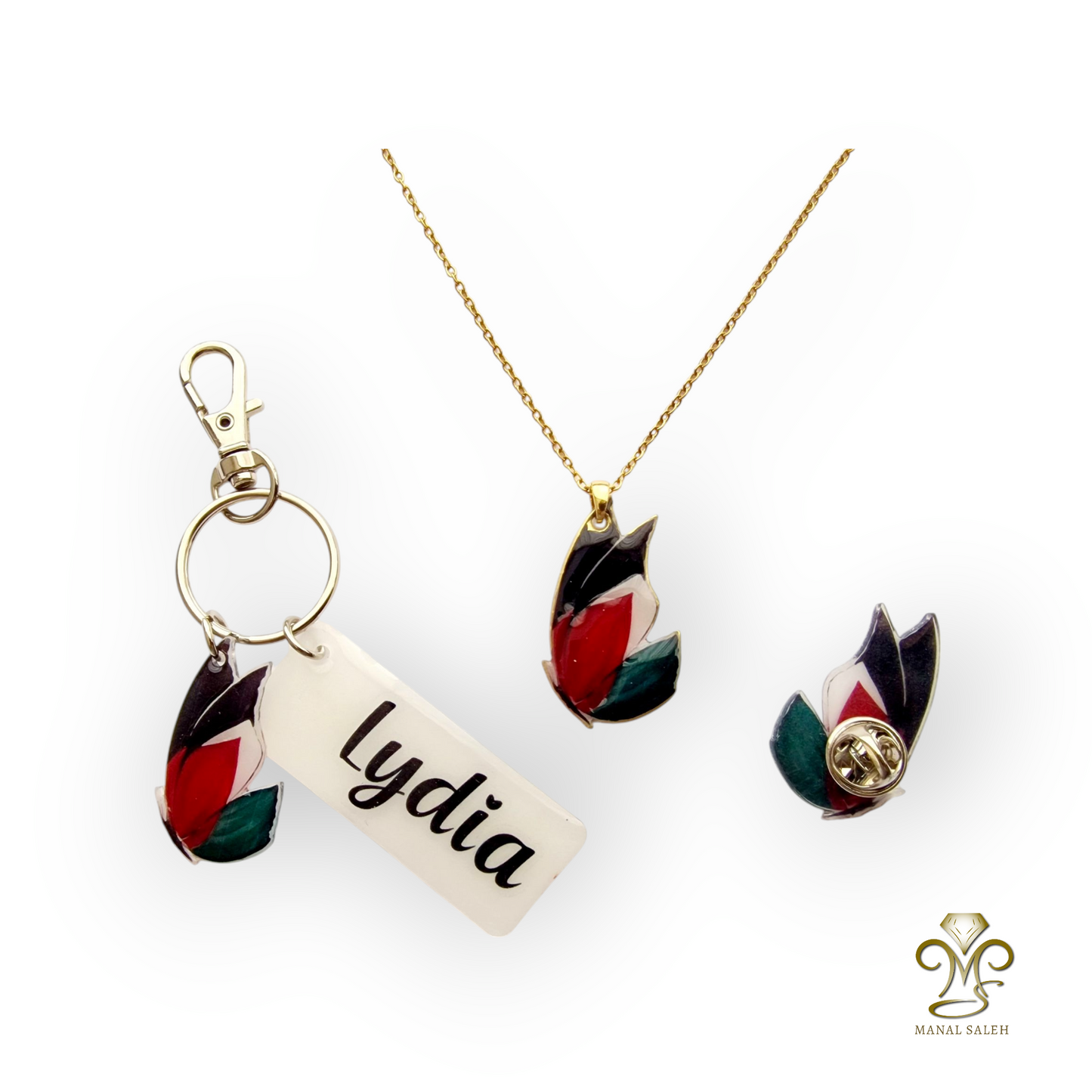 Lydia's Butterfly set: Keychain + Pin + Necklace