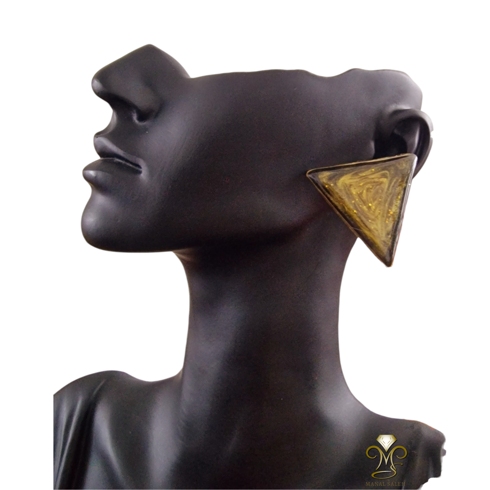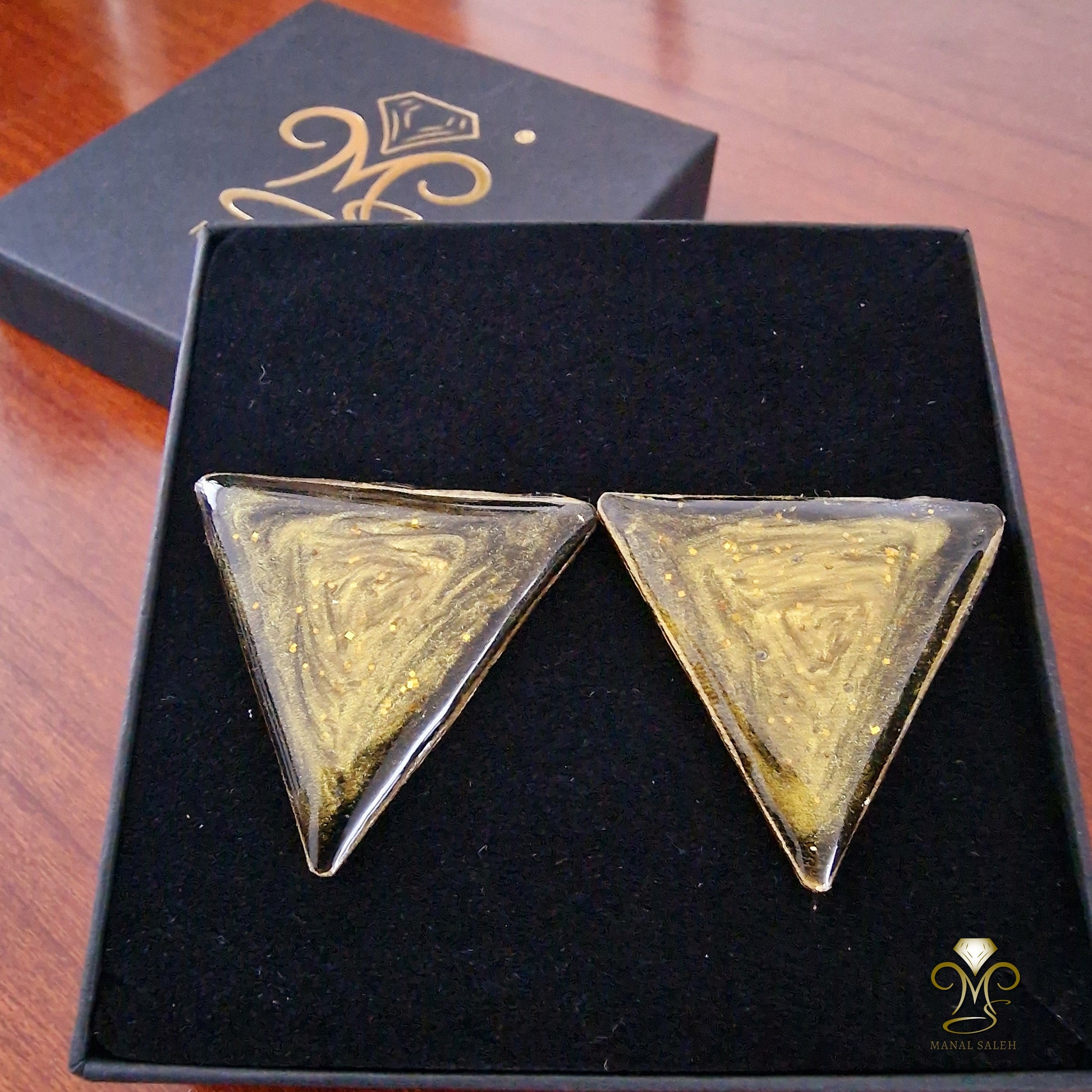 Add a touch of gold to your accessories with our Golden Touch Triangle Earrings. With a golden shimmer and black and gold design, these gold-plated studs are perfect for a glamorous night out. Classy and trendy, these earrings will elevate any outfit to the next level.